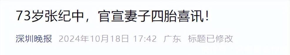参考文献:1.深圳晚报:《73岁张纪中,官宣妻子四胎喜讯!》2024-10-182.潇湘晨报·晨视频:《74岁张纪中庆祝女儿1岁生日,遭网友玩梗“求娶”,张纪中怒怼》2025-10-063.搜狐娱乐:《张纪中老婆回应婚姻没有爱情:爱不爱的,其实跟大家也没有什么关系 》2025-10-074.红星新闻:《张纪中妻子最新发声:已取证》2025-10-13